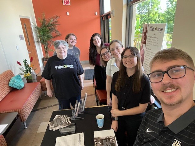 On Thursday, I attended the Women’s Veterans Day event from 9:30 to 1:00. I was glad to meet up with two other interns, Ethan and Brooke, who helped promote the public history programs at UCF and encouraged the veterans to share their stories with us by leaving their contact information to reach out at a later time. We had a minimal amount of time to talk with the attendees compared to their main event, which was held in another part of the building, where our table was located behind closed doors. The three of us also spent some time helping a veteran from Afghanistan set up her easels and posters, which were displayed across the room for the event. She explained that the posters were a part of the She Served Initiative, commemorating the stories of veteran women. Everyone at the event was very friendly, and I met a woman who had served in World War II, hoping to find more women from that war. By luck, I got to witness a special moment for her when she met another woman who was in the Navy, and I could tell it was a great bonding moment for them.